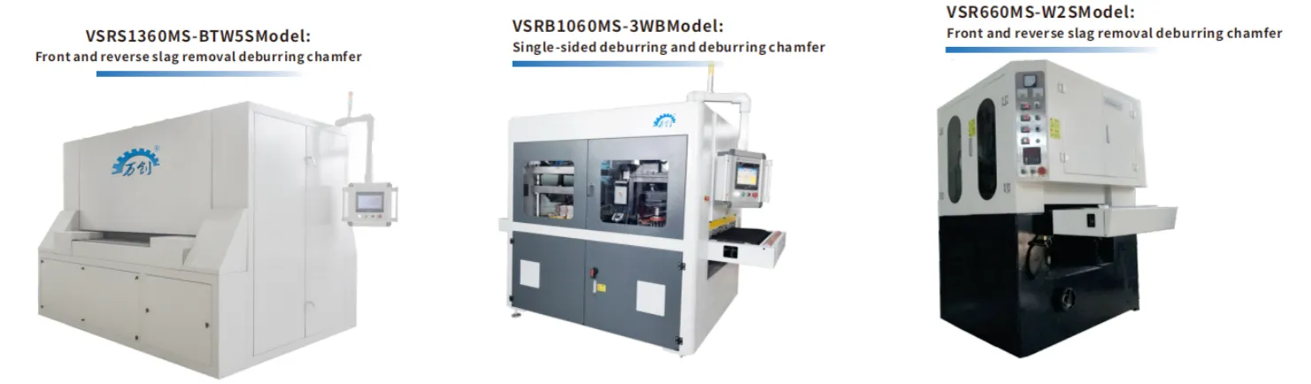 The steel shaft at work station of steel shaft belt (roll/disc) is of elastic structure, which is flexible and fits to the end face of workpiece and runs at high speed. Slag is broken and fallen off by striking and cutting slag.Compared with traditional abrasive belt grinding method, slag removal is more thorough, less than one tenth of the cost of consumables, more energy-saving and environmental protection;The abrasive belt is grinded at high speed by the elastic press to fit the end face of the workpiece, removing the burrs at the fast opening, and the flexible contact of the abrasive belt with the workpiece reduces the abrasive belt loss.Abrasive block is a flexible material, which is flexible and close to the end face of the workpiece and rotates at high speed to cut the edges and edges of the workpiece. Soft abrasive block can penetrate the grooves and holes of the workpiece to remove inverted burrs and chamfers.